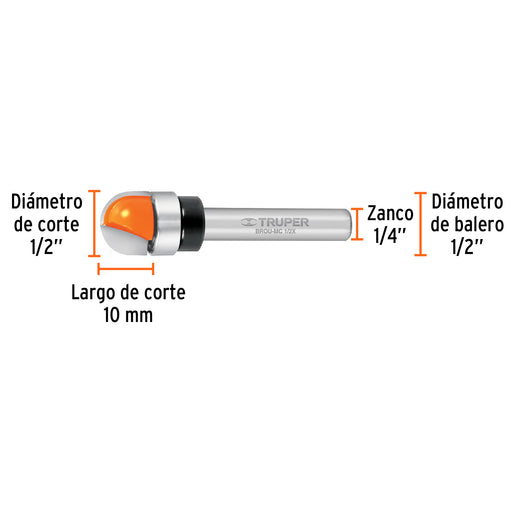 Ver todos los detallesFresa para ruteadora corte Media Caña 1/2" Con Rodaje Truper